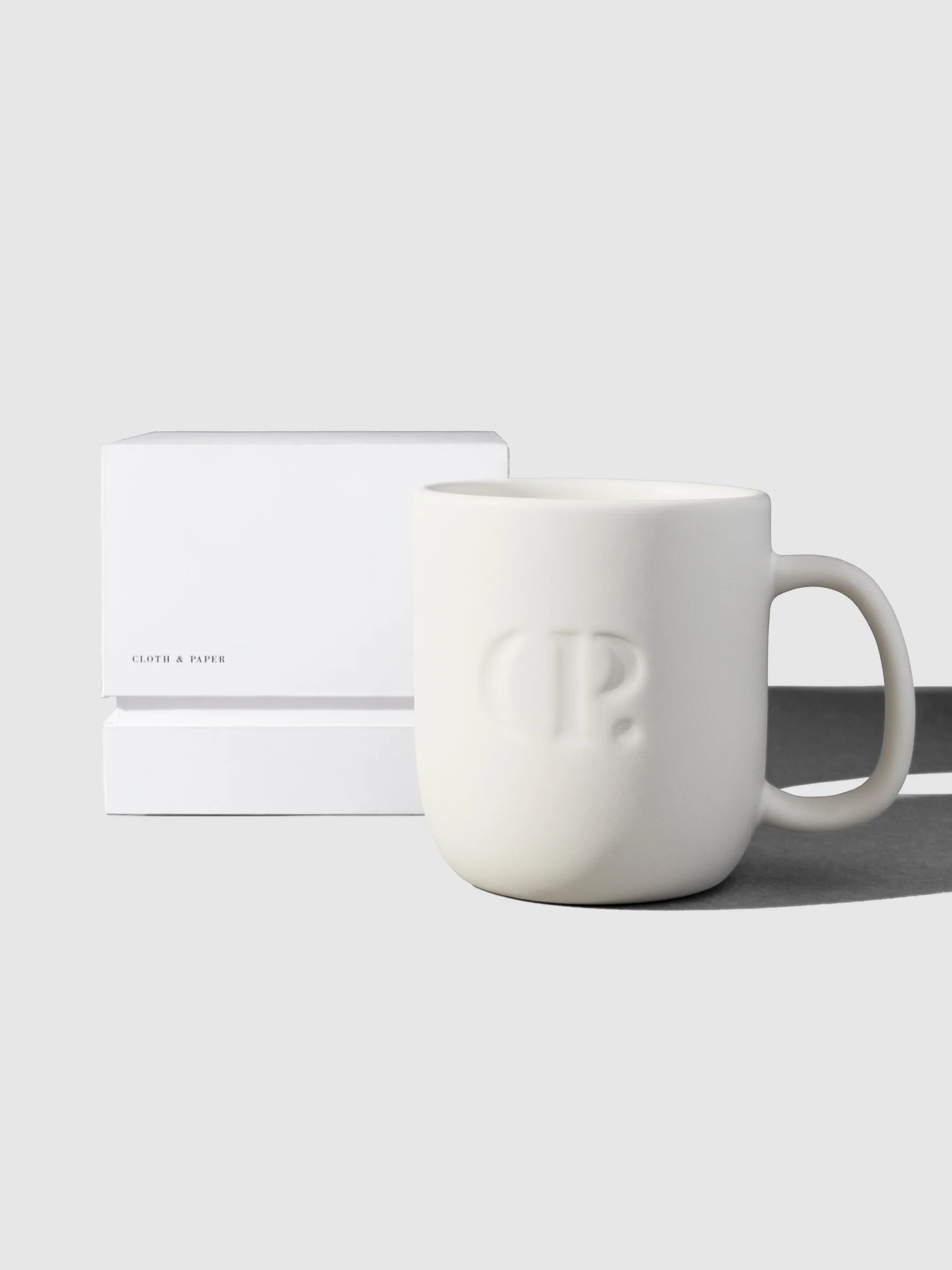 - Ceramic mug with embossed Cloth & Paper logo