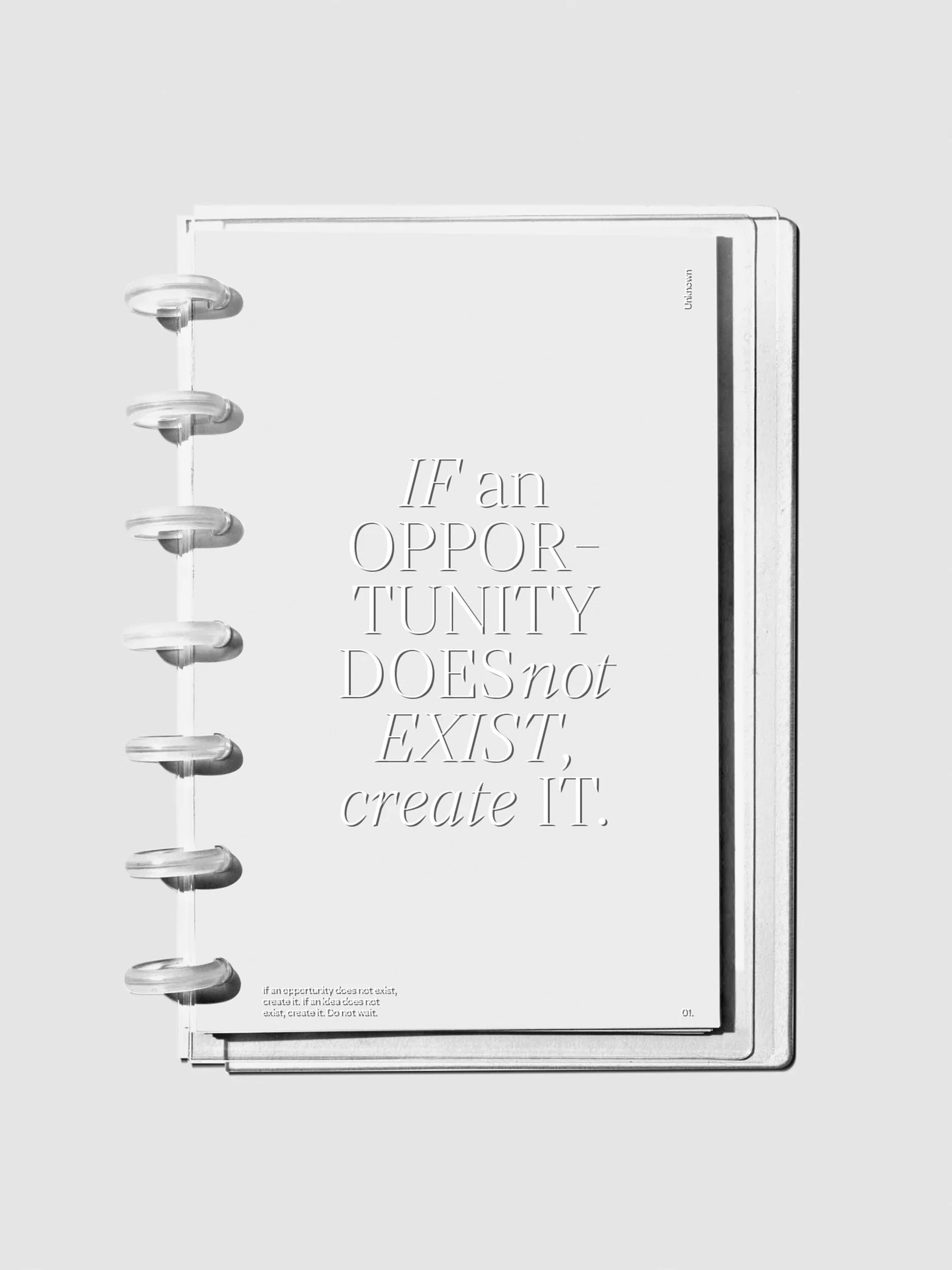 This Glass Plastic Discbound Notebook Cover is available in three discbound sizes to meet all your planning needs. Our Opportunity cover features a inspirational quote design printed in white ink.